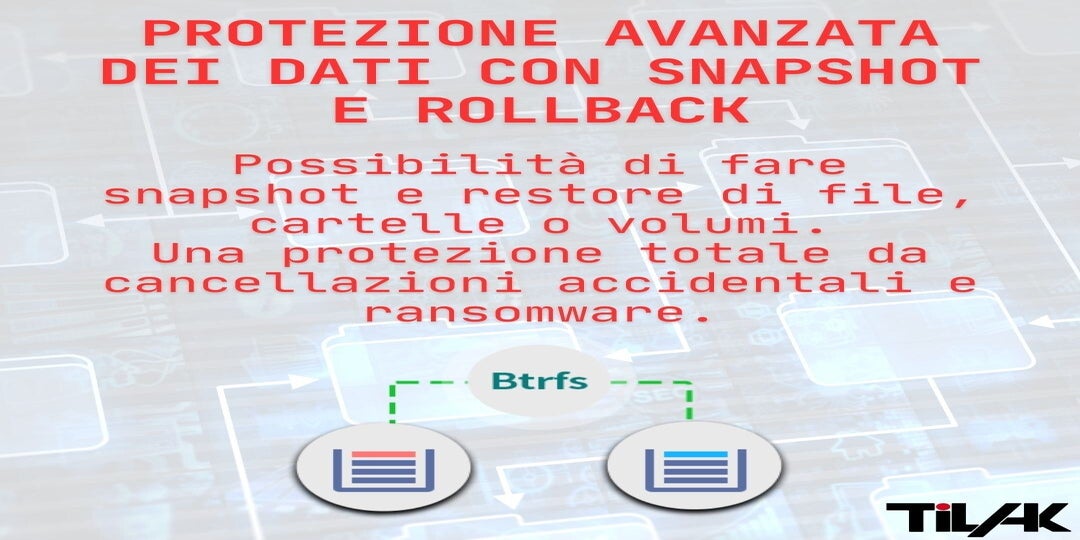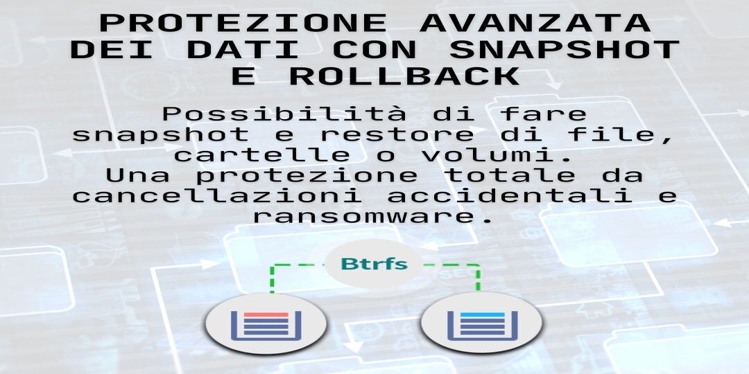 Con il file system Btrfs sui NAS ASUSTOR ottieni prestazioni al top e una gestione dei dati all’avanguardia con snapshots automatici per backup rapidi e sicuri, riparazione automatica per proteggere i tuoi file da errori imprevisti e compressione avanzata per ottimizzare spazio e performance.